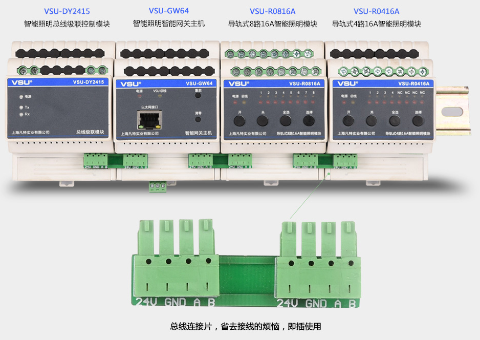 VSU-NET總線產(chǎn)品,大都采用雙總線口的設(shè)計(jì),搭配連接片使用,極大降低施工人員接線的工作量,產(chǎn)品設(shè)計(jì)合理專(zhuān)業(yè)、系統(tǒng)、更加人性化;系統(tǒng)配置免編程,手機(jī)即可完成簡(jiǎn)單的系統(tǒng)編程,不需要電腦,人機(jī)互動(dòng),真正實(shí)現(xiàn)智能化控制。