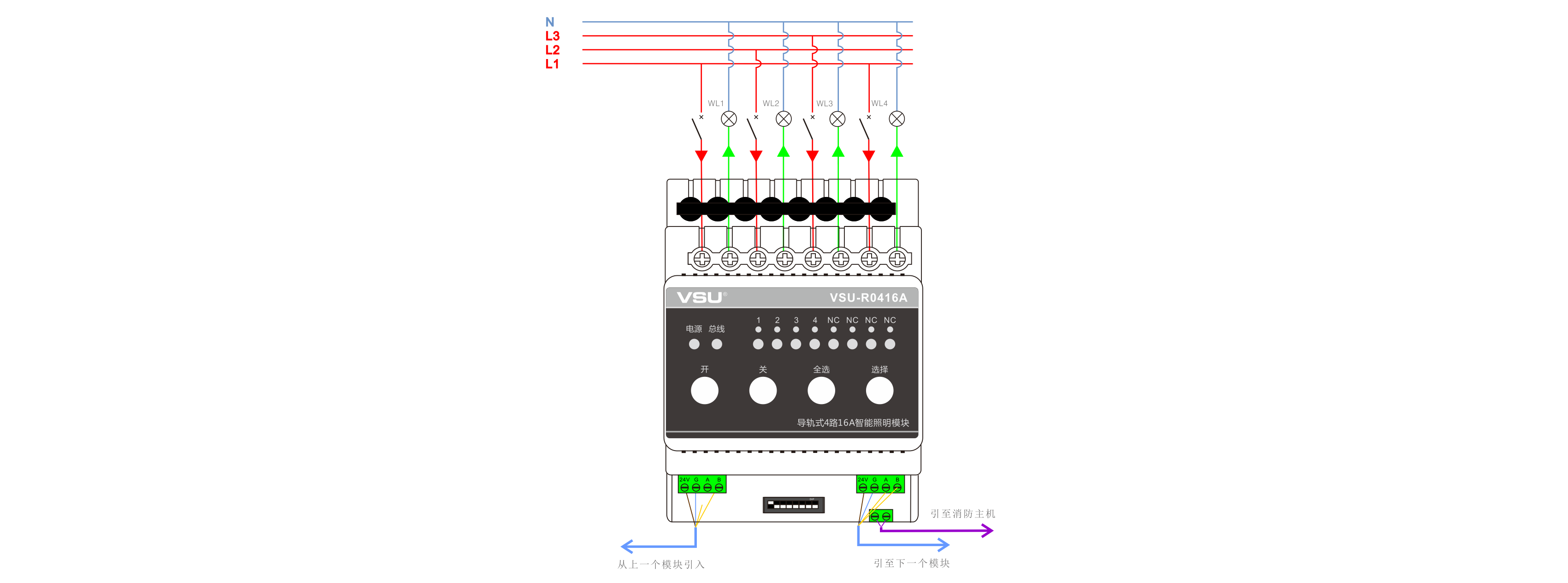 本產(chǎn)品為導(dǎo)軌式安裝,含4路智能繼電器,每回路可獨立控制3520W燈具的開關(guān),帶應(yīng)急按鍵,LED燈時時指示各個回路開關(guān)狀態(tài)
