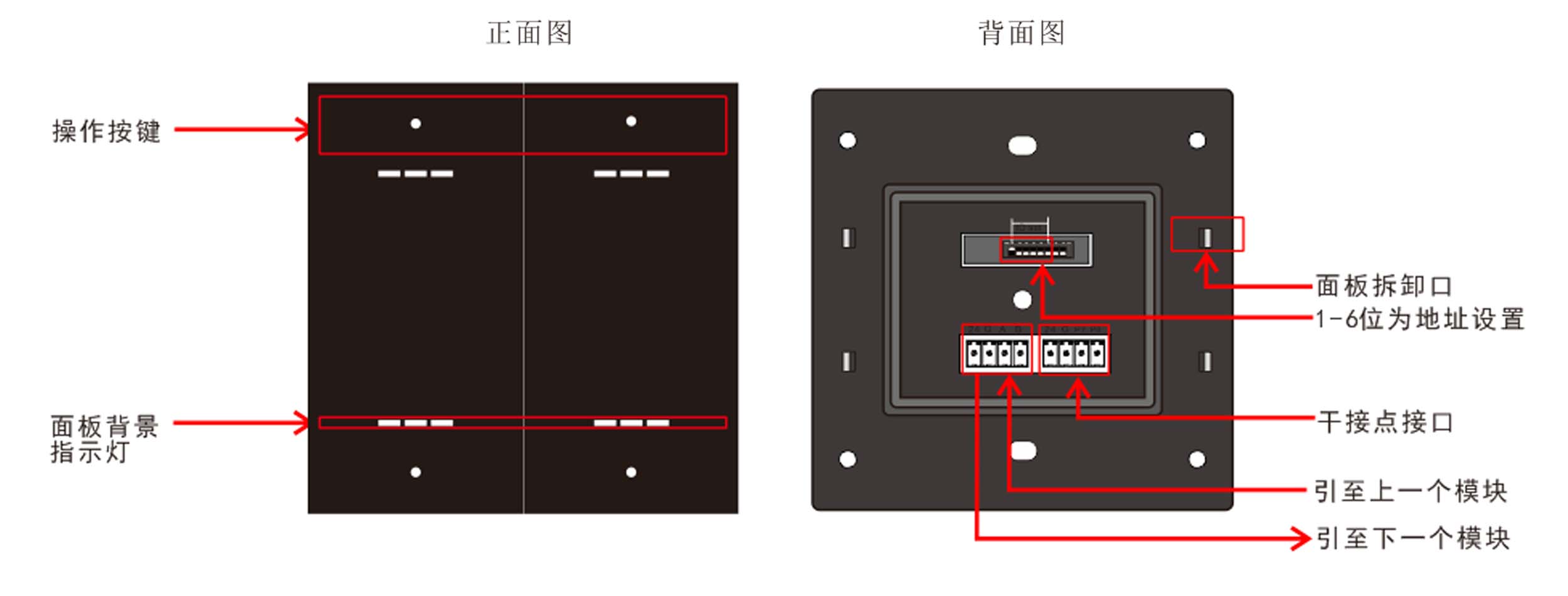 標(biāo)準(zhǔn)86底盒安裝,支持無(wú)縫聯(lián)接,提供4鍵,每個(gè)按鍵帶1路LED指示燈,復(fù)位式輕觸開(kāi)關(guān),結(jié)構(gòu)成熟,性能穩(wěn)定,標(biāo)準(zhǔn)工藝,采用塑料材質(zhì)(顏色可選灰色、黑色和香檳金);自帶感應(yīng)式背光燈;提供兩路IO輸入可外接傳感器。