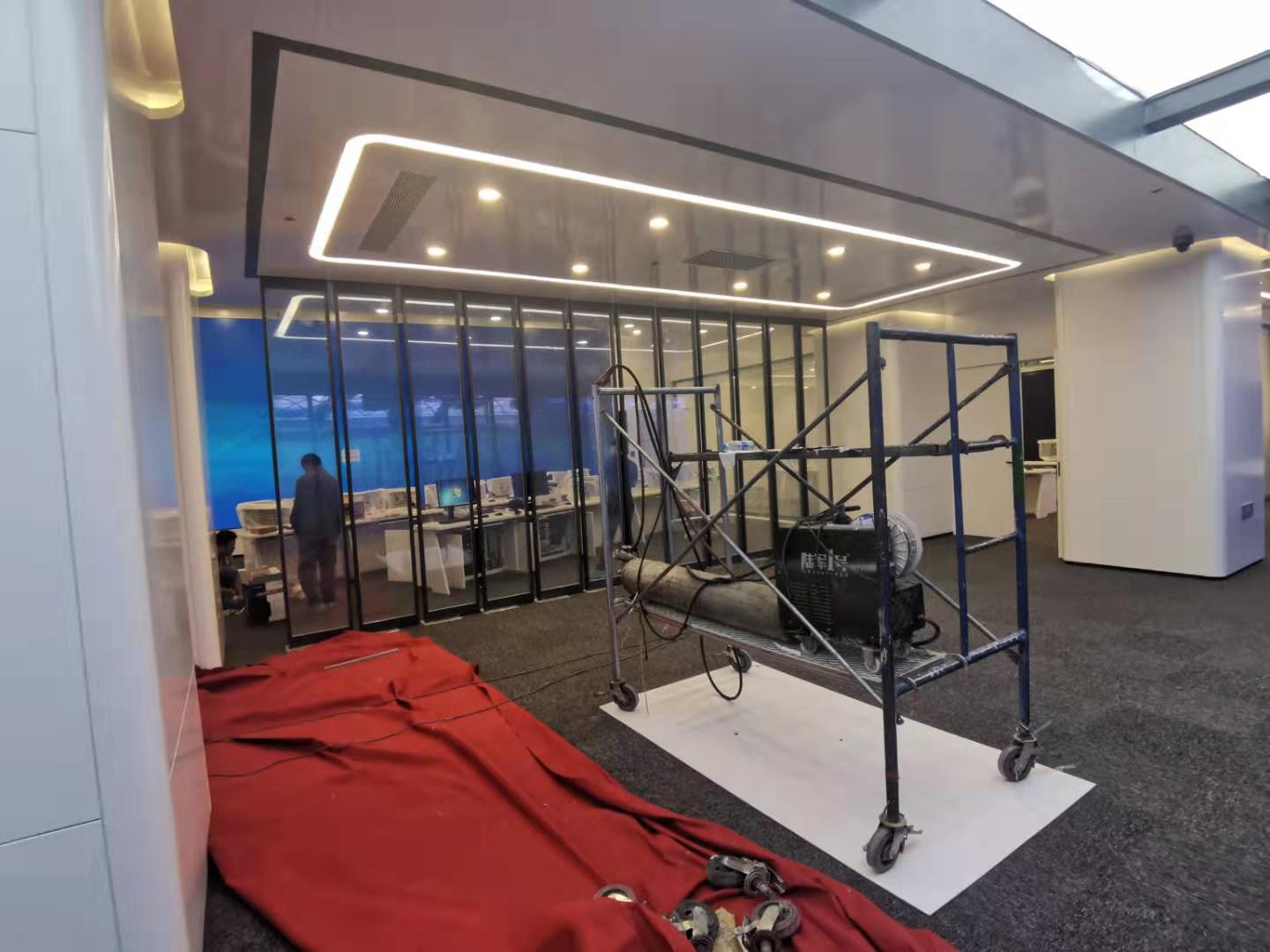 霧化玻璃與霧化玻璃門:調(diào)度中心有五組霧化玻璃,其中兩組為可旋轉(zhuǎn)霧化玻璃門。經(jīng)過技術(shù)對接以后,通過控制霧化玻璃的干接點(diǎn)信號,閉合則控制霧化玻璃門透明,斷開則控制霧化玻璃門霧化。旋轉(zhuǎn)門也同樣控制干接點(diǎn)信號,閉合則旋轉(zhuǎn)九十度,斷開則復(fù)原。