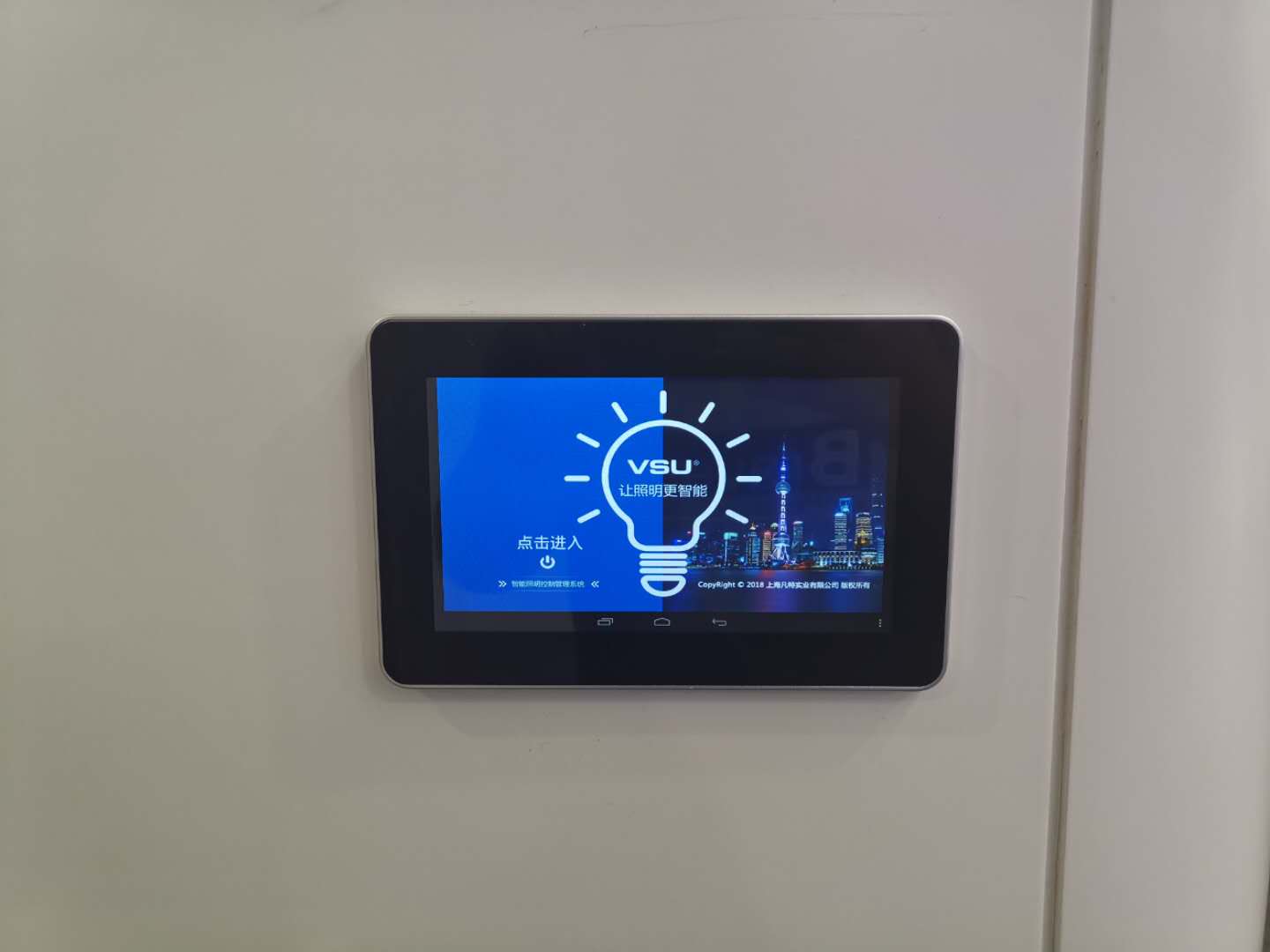 項(xiàng)目采用7寸觸摸屏對整個辦公區(qū)域進(jìn)行集中控制:燈光控制;電動門的開啟與關(guān)閉;霧化玻璃的透明/霧化切換,霧化玻璃門的旋轉(zhuǎn);空調(diào)的高中低三檔控制,以及各種場景化的控制效果。