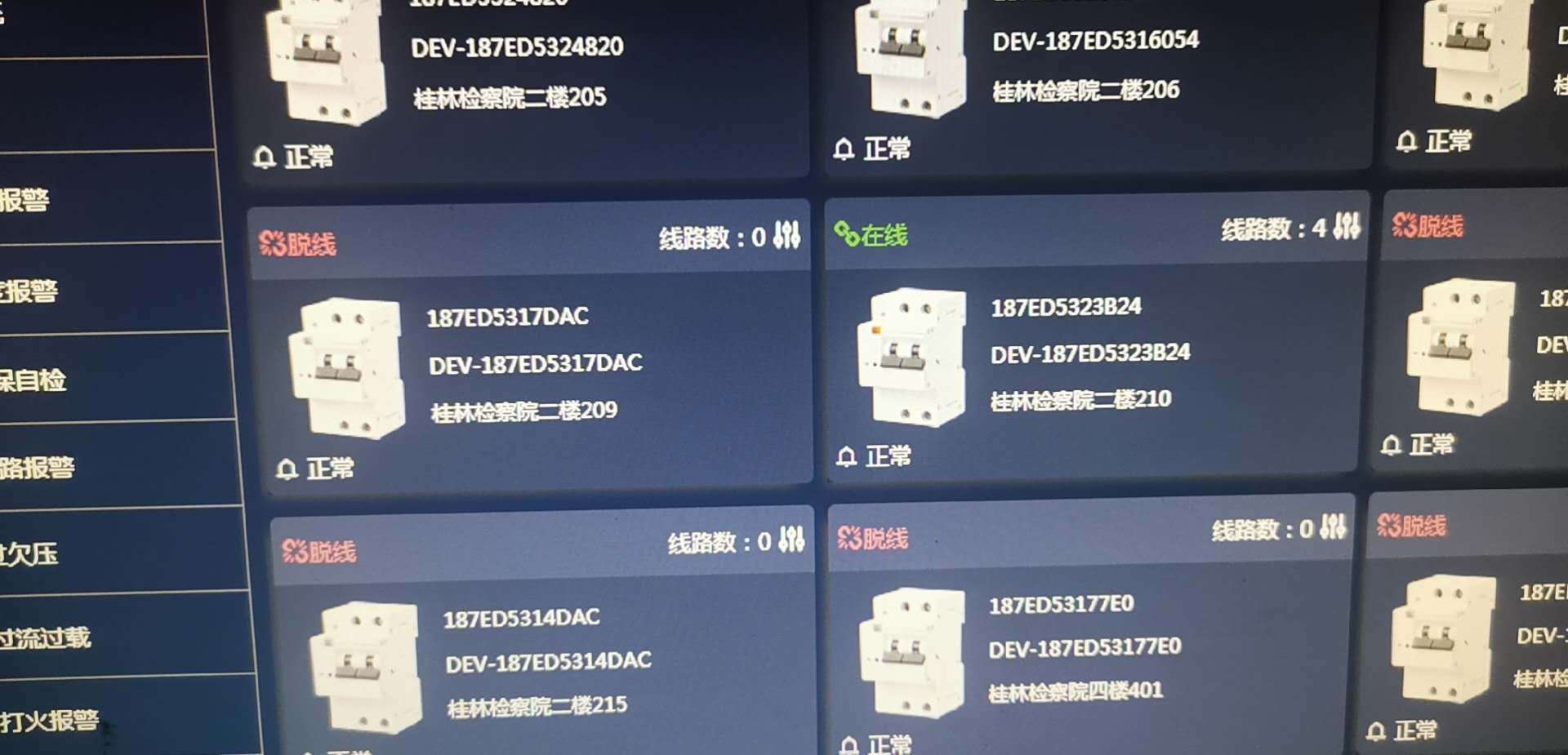 本月初在了解到項目現(xiàn)場具體情況,確保各項前期工作都已完成后,上海凡特便派遣技術(shù)人員前往廣西壯族自治區(qū)桂林市人民檢察院開展智慧用電控制系統(tǒng)的調(diào)試:空開設(shè)備撥碼、網(wǎng)關(guān)修改本地指向,網(wǎng)關(guān)修改固定IP,安裝本地部署軟件,調(diào)試設(shè)備等等工作。