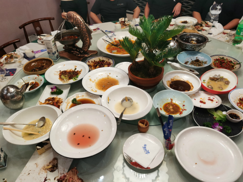 在推上蛋糕,唱完生日歌,送上祝福,人人酒足飯飽之后,才發(fā)現(xiàn)團(tuán)建活動來到了最高潮——小游戲。一個考驗反應(yīng)力、專注力的小游戲,做錯或者沒反應(yīng)過來的人都得接受旁邊人幫自己夾的“一口”菜。真是一口還是半碗,小編就不說了,下面的圖片表明了事情的結(jié)果。