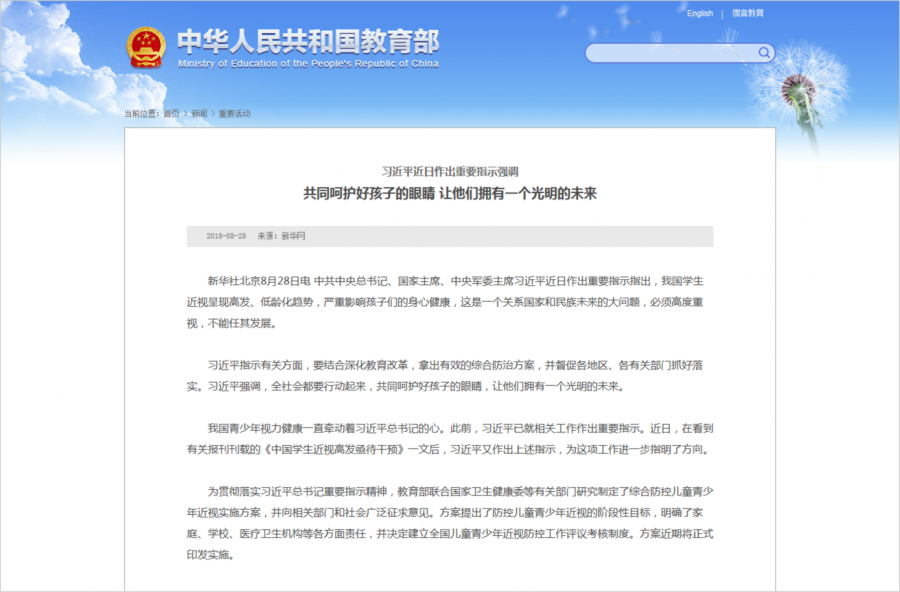 針對近年來我國兒童青少年近視率居高不下、不斷攀升,近視低齡化、重度化日益嚴(yán)重等問題,習(xí)近平總書記曾指出:我國學(xué)生近視呈現(xiàn)高發(fā)、低齡化趨勢,嚴(yán)重影響孩子們的身心健康,這是一個(gè)關(guān)系國家和民族未來的大問題,必須高度重視,不能任其發(fā)展。有關(guān)方面要結(jié)合深化教育改革,拿出有效的綜合防治方案,督促各地區(qū)、各有關(guān)部門抓好落實(shí),同時(shí)強(qiáng)調(diào)全社會(huì)都要行動(dòng)起來。