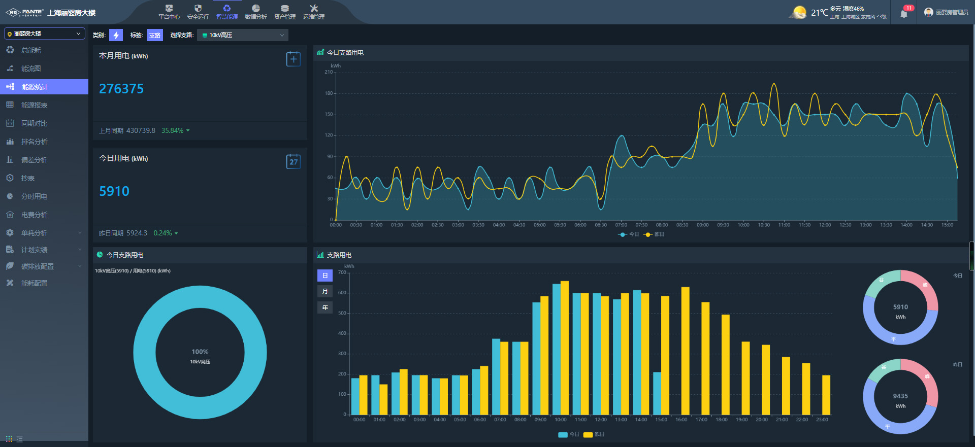 傳統(tǒng)企業(yè)的能耗管理沒(méi)有統(tǒng)一的監(jiān)管方式,數(shù)據(jù)統(tǒng)計(jì)不集中,各種能耗之間信息不互通,無(wú)法形成統(tǒng)一有效的管理;對(duì)能源流向的管理沒(méi)有實(shí)時(shí)數(shù)據(jù),無(wú)法及時(shí)發(fā)現(xiàn)一些能源浪費(fèi)的問(wèn)題存在,造成無(wú)需求區(qū)域能源的流失;傳統(tǒng)的能耗管理方式依靠人工巡檢、手動(dòng)抄表,無(wú)法對(duì)用能規(guī)律進(jìn)行自動(dòng)化統(tǒng)計(jì)分析,管理效率低;沒(méi)有預(yù)警、預(yù)防、預(yù)測(cè)機(jī)制,跑冒滴漏現(xiàn)象普遍存在而沒(méi)有及時(shí)發(fā)現(xiàn),存在安全隱患。凡特根據(jù)正泰啟迪智電港的情況,為其打造一套專業(yè)的智慧能源管理系統(tǒng)。