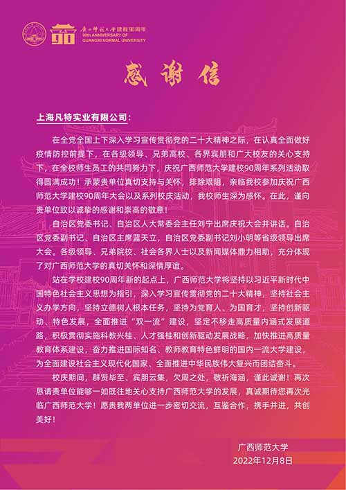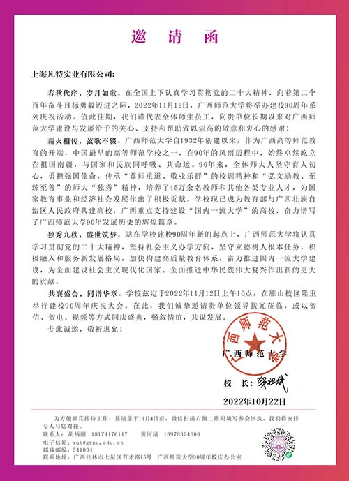 【凡特同行】恭賀廣西師范大學(xué)建校90周年校慶圓滿舉辦!