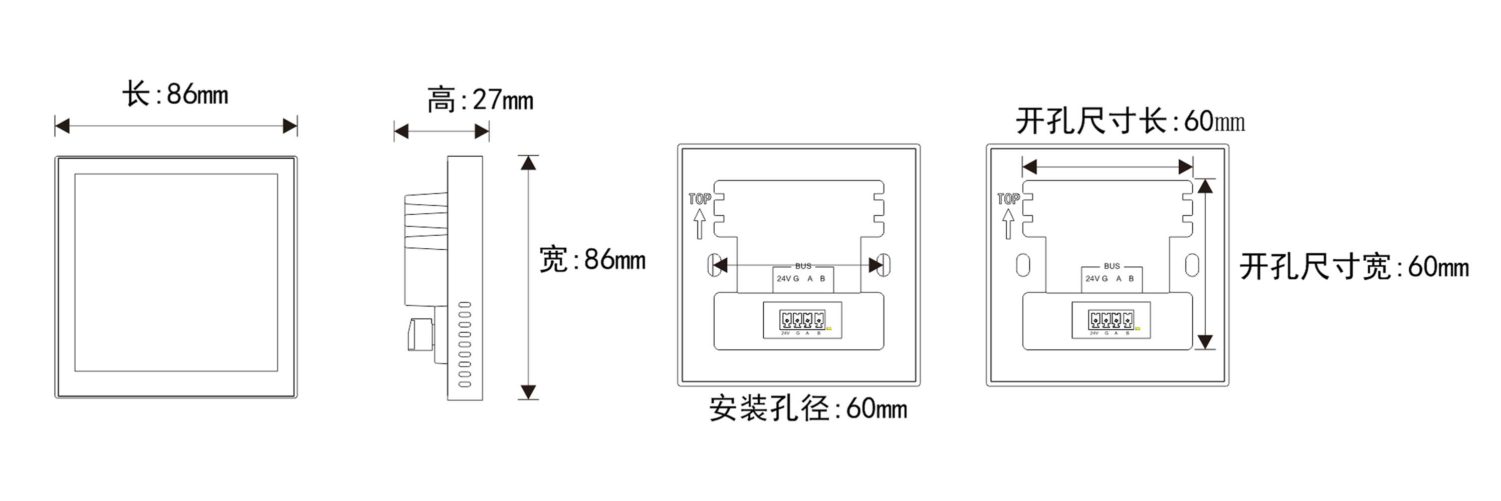 標(biāo)準(zhǔn)86盒安裝,4寸真彩屏,單控開關(guān)、窗簾和場景總線控制,可自定義界面支持3D文字、3D圖片,個性化界面;用于集中控制,支持雙向通信,安裝方便,接口靈活,適用于各種多媒體中央控制系統(tǒng)。