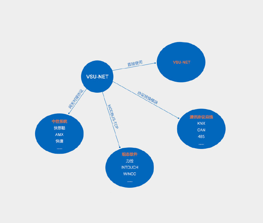 VSU智能照明控制系統(tǒng)通過自主研發(fā)的VSU-NET通訊協(xié)議可以做到單獨(dú)自組解決方案,同時(shí)也可以與市場上不同通訊協(xié)議的系統(tǒng)搭配,實(shí)現(xiàn)靈活多樣的行業(yè)智能化控制解決方案。 VSU的VSU-NET···